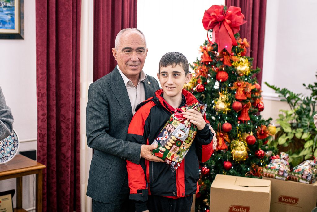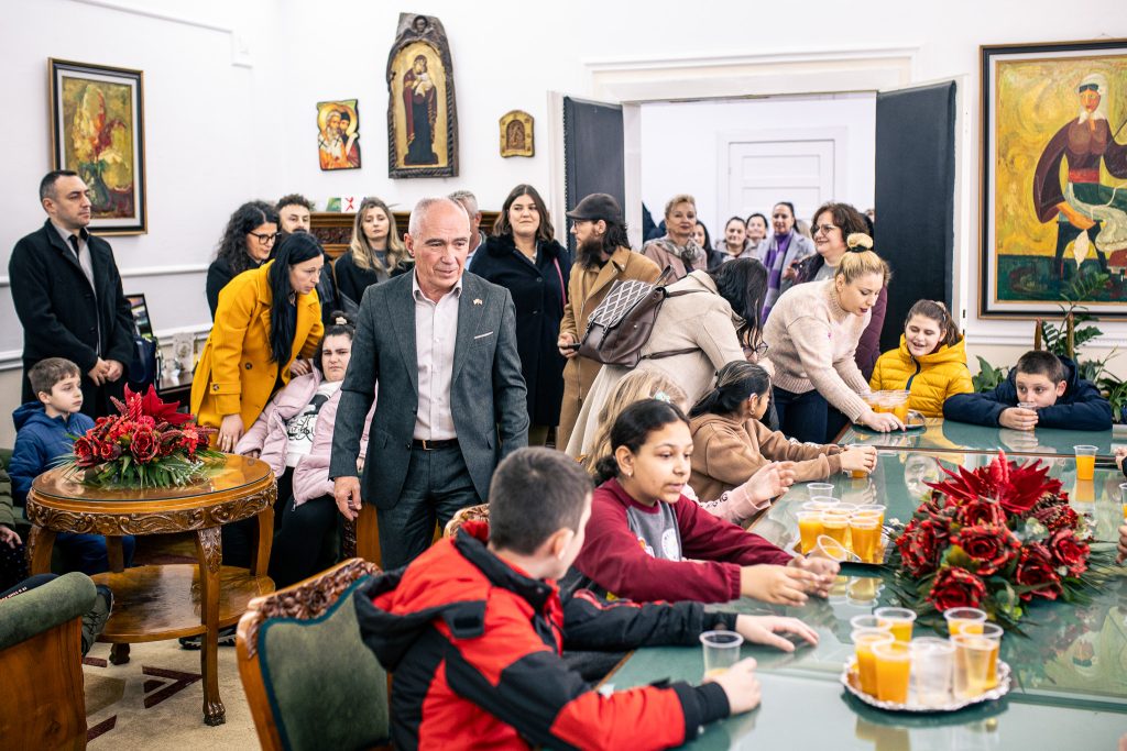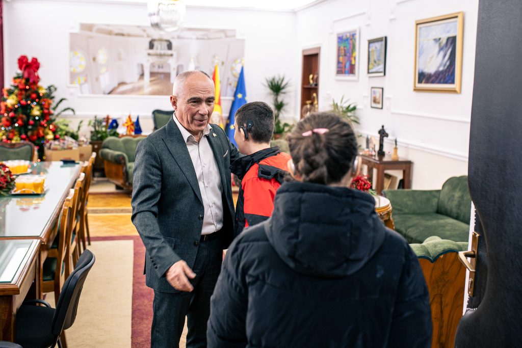 Потоа им подари новогодишни пакетчиња, а пред да ја завршат посетата направија и заедничка фотографија и со нивните наставници и родители.