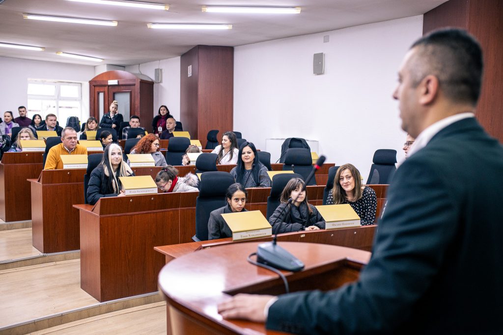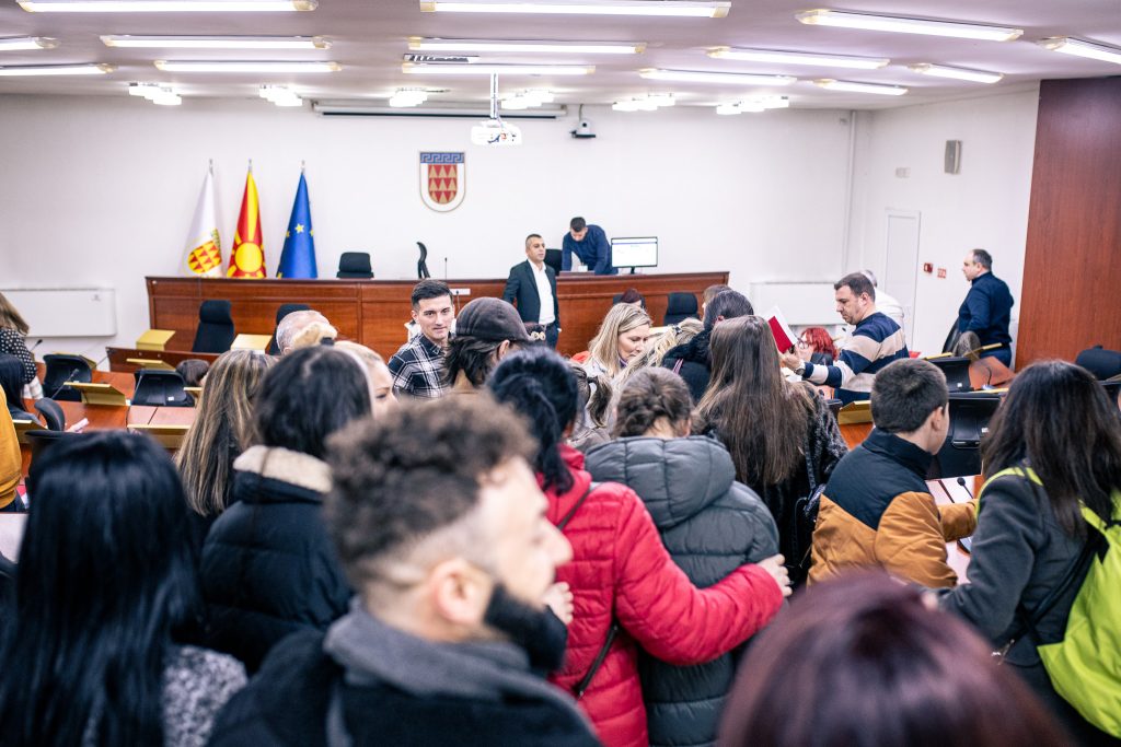 Во салата на Советот на Општина Битола каде имаше комисиска расправа, учениците беа пречекани од претседателот на Советот, Бојан Бојкоски и присутните советници на комисијата.