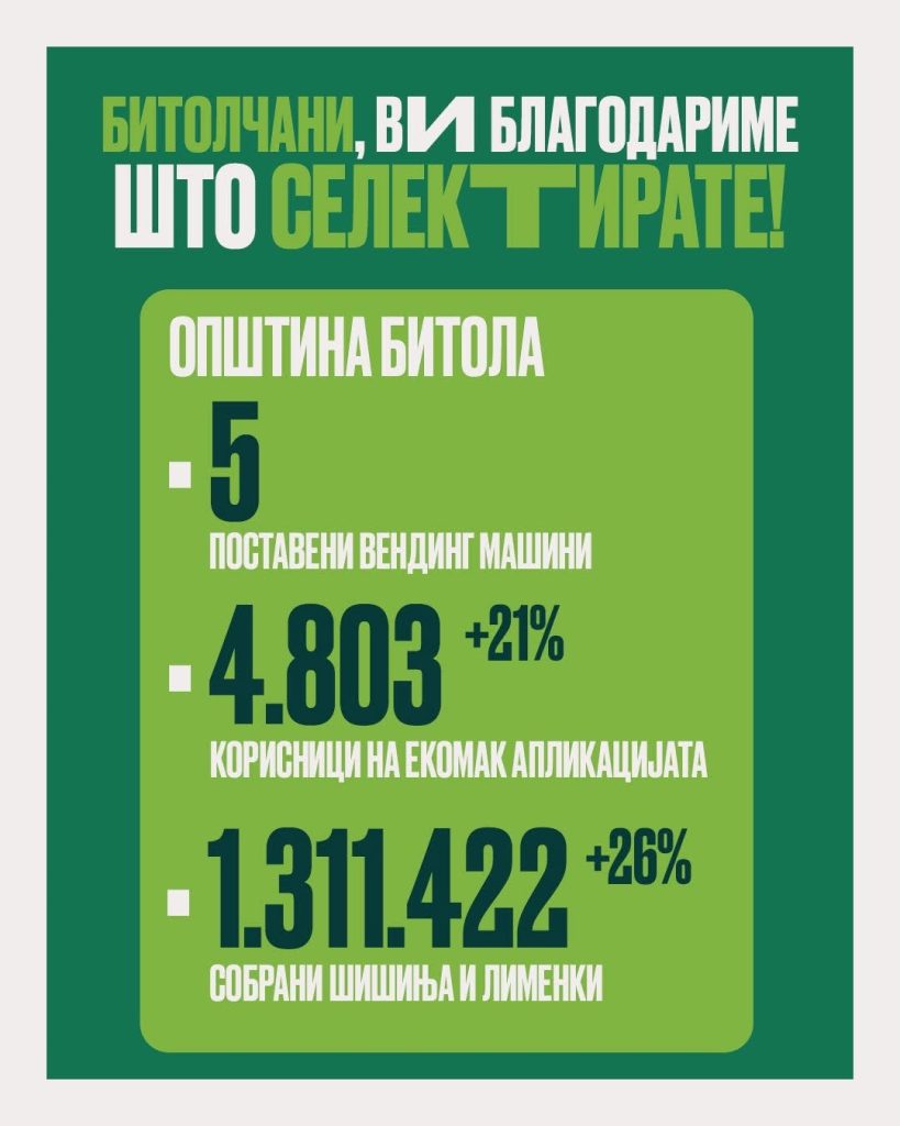 Во партнерство со ПАКОМАК, поставени се 5 вендинг машини каде граѓаните можат да одложат пластика и за тоа да добијат директна корист.