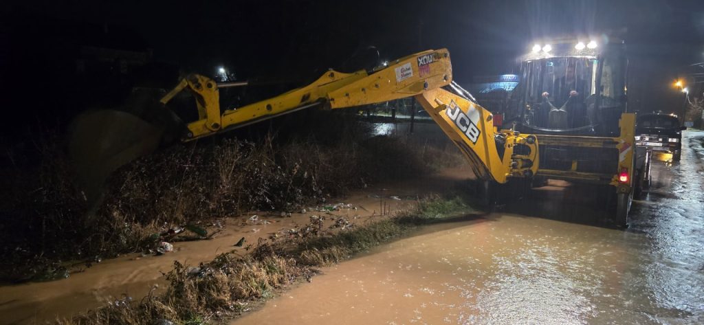 Битолски „Водовод“ во Кравари интервенира со механизација, а станува збор за проблем со каналската мрежа која не може да ја прими големата количина на вода. Заради ова екипите на „Водовод“ работат на лоцирање на најкритичните точки, со цел што поскоро санирање на состојбата.