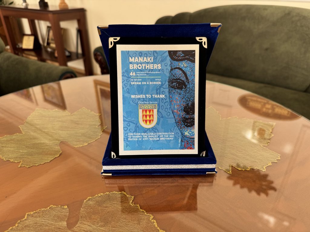Во знак на благодарност, на градоначалникот, првите луѓе на фестивалот „Браќа Манаки“ му врачија плакета со мотив од плакатот за 46-то издание чиј автор е познатиот македонски, а светски сликар Киро Урдин.