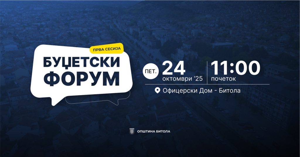 Општина Битола, започнува со одржување на три форумски сесии низ кои локалната самоуправа заедно со граѓаните, ќе го креира општинскиот Буџет за 2026 година. Првата форумска сесија ќе се одржи на 24.10.2025 година во Офицерски дом со почеток во 11:00 часот. На форумските сесии се поканети сите претставници на месните и урбаните заедници, претставници од граѓански и спортски здруженија, како и сите граѓани кои имаат конструктивни предлози за нови проекти кои ќе започнат да се реализираат од 2026 година.